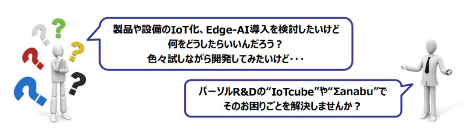 自社製品・設備のIoT化や、Edge-AIの導入を検討されており、試作を重ねて色々試しながら開発を行い、開発ノウハウを蓄積していきたいとご相談を頂きました。