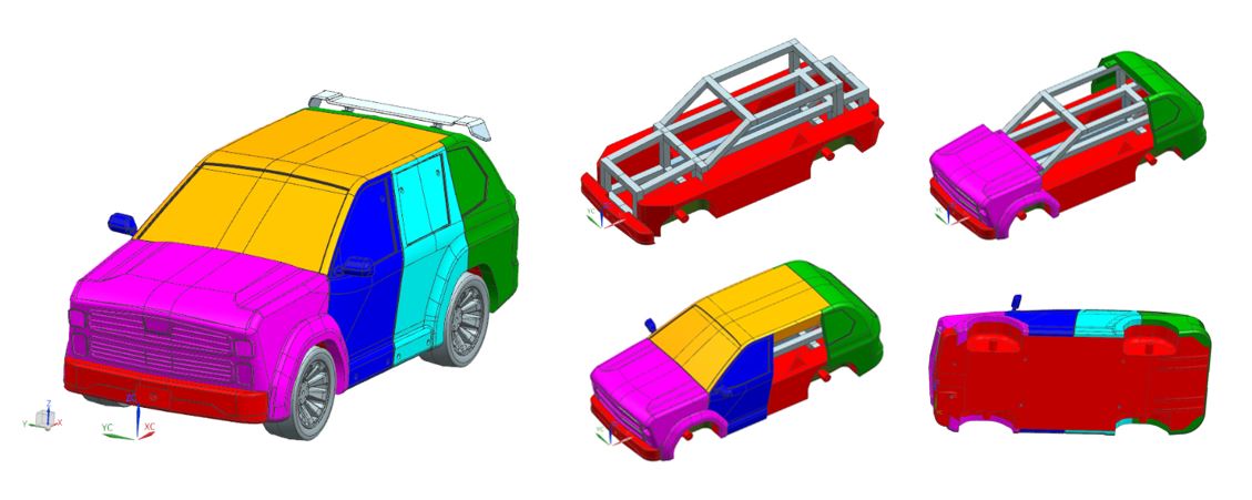 意匠データから、ボディー、グリル、バンパー、ヘッドライトなど各部品の詳細な3D CADデータを作成。風洞実験用の強度を考慮した構造設計や、気圧計測用のベンチュリー管のレイアウトなどもご提案可能です。