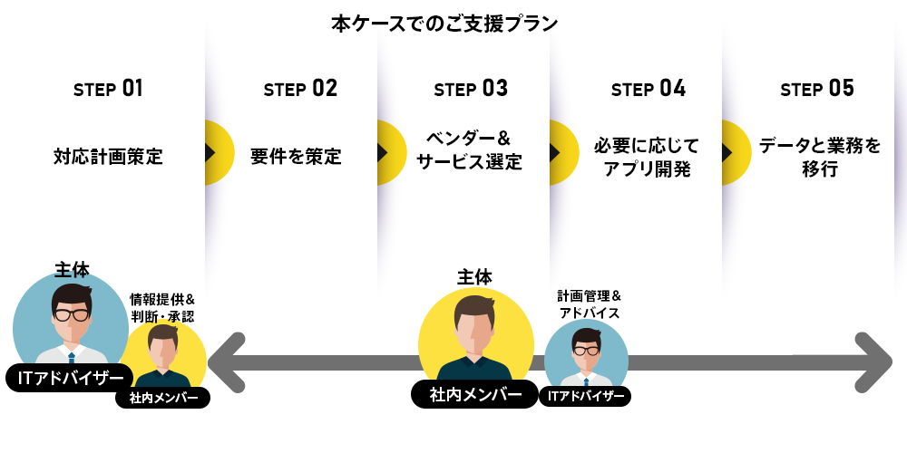 アドバイザーとしてアサインされたのは、ITベンダー出身で、現在は中小企業診断士やITコーディネータなどの資格を持ち、ITを強みに経営コンサルタントとして独立・開業されている岩崎さんでした。岩崎さんは初回のアポイントで、経営層のIT推進への強い意志と現場の取り組み意欲の高さを感じ、自身がサポートすべき点を次のように考えたといいます。