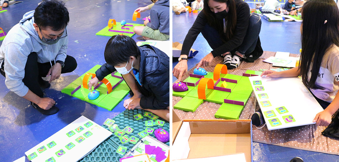 参加している保護者の方からは「お片づけやコミュニケーションの考え方が変わった。伝え方って大事」「身近なところでプログラミング的思考が身につくことを気付けた」「おもちゃを使って興味を最大限に引き出していて親も楽しめた」など、プログラミング的思考の面白さや可能性に共感するコメントをいただきました。