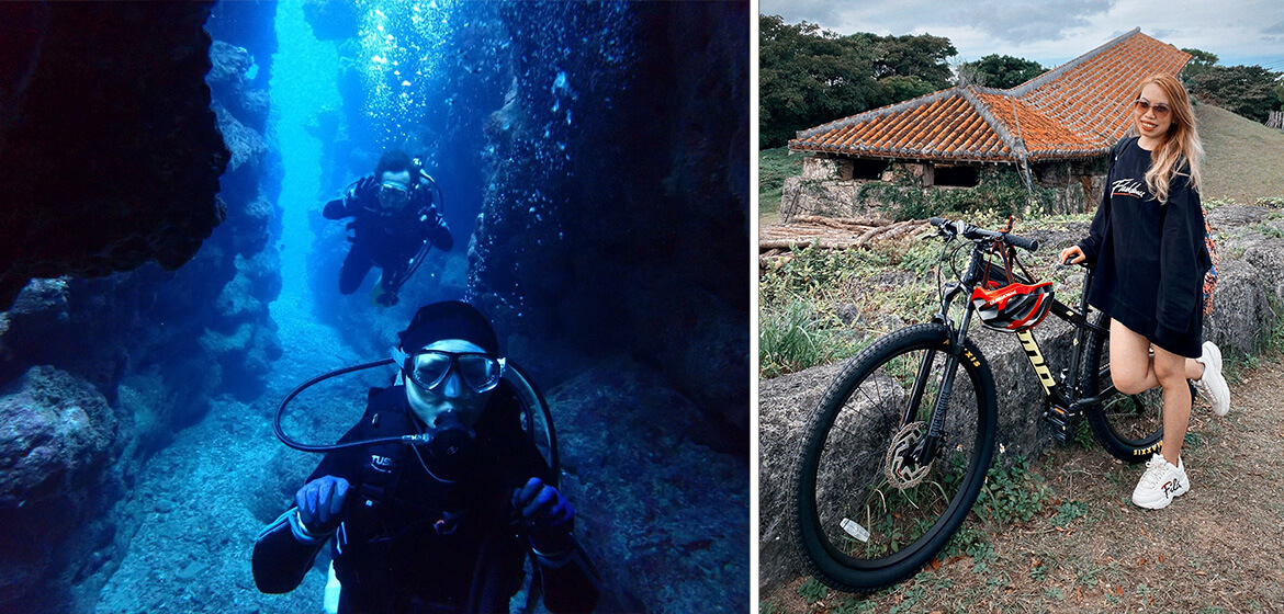 ワーケーションにおける、もう一つの側面であるバケーションについても、休日は各々ダイビングやレンタカー・レンタサイクルで周辺の観光に行き、沖縄を堪能したようです。 アクティビティがあり、休日の選択肢が多いことも沖縄でのワーケーションのメリットです。