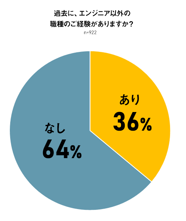 - エンジニアのうち、36%はエンジニア以外の職種を経験。