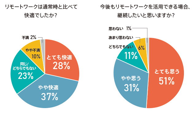 - 65%がリモートワークは「快適」と回答