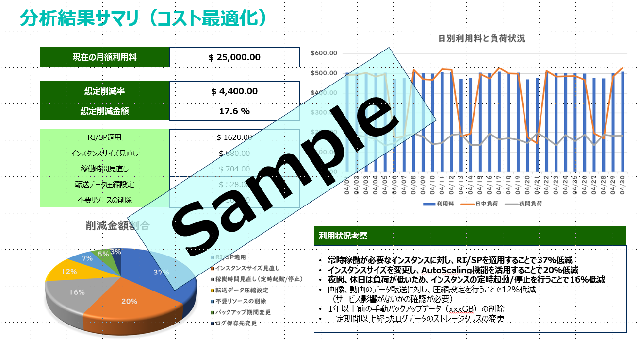 運用中のクラウド環境をアセスメントし、コストの最適化と構成の見直しを提案。