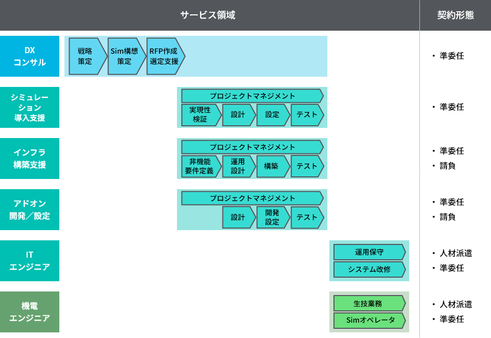 PLMの構想・構築・改修だけでなく、導入後のモデル改修エンジニア、シミュレーションオペレータ、PLMを使った現場改善エンジニアの派遣もバカラカジノはご提案できます。